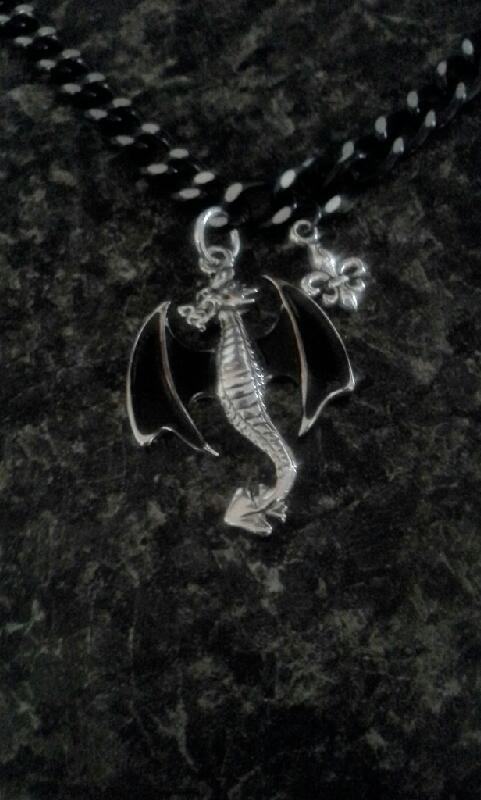 Gothic Victorian Dragon & Fleur de Lis Charm Necklace