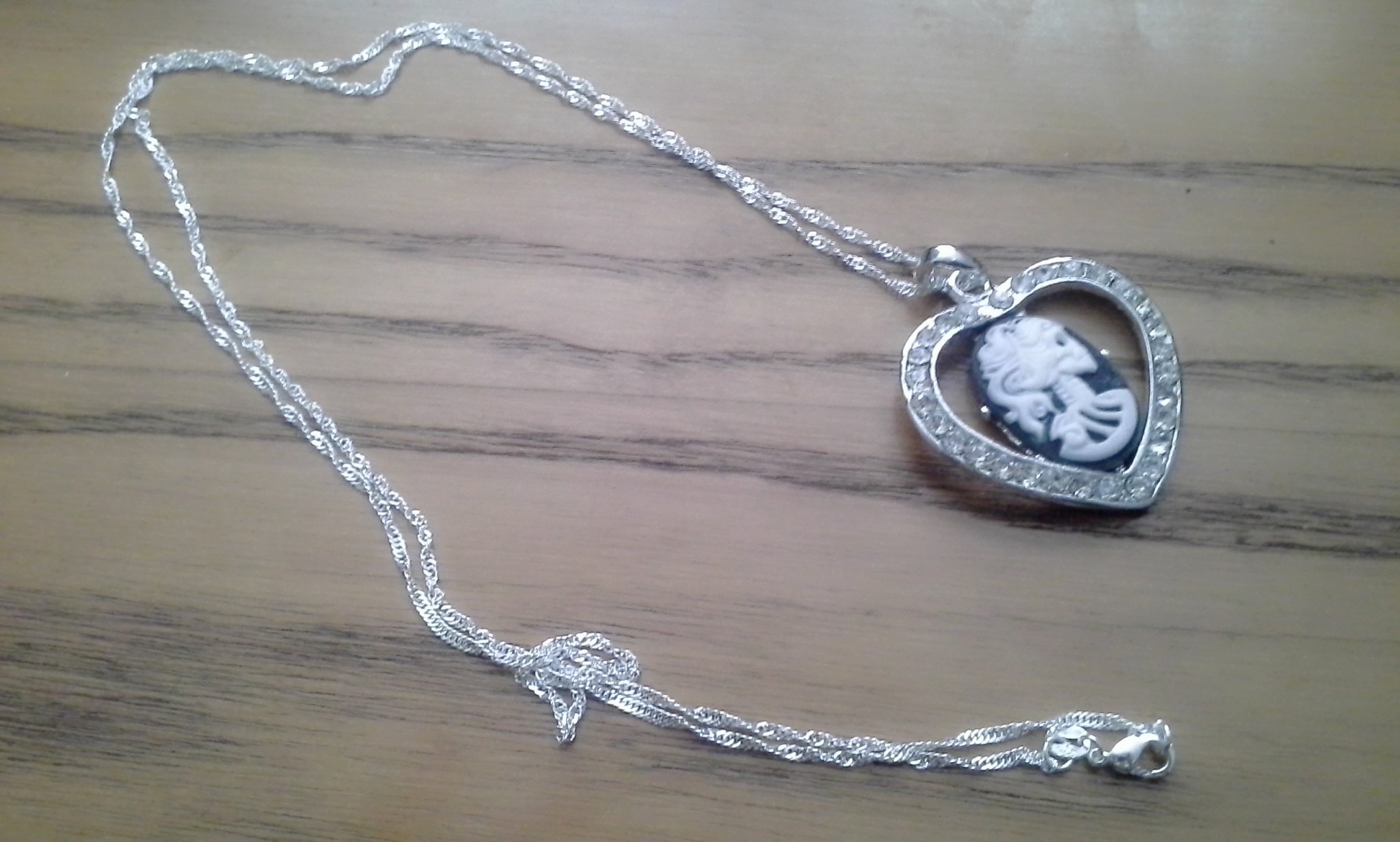 A lovely piece made exclusively for one of our customers! This silver plated cameo holds a skull cameo and is surrounded by crystals. The chain measures 30" in length and is pure sterling silver!