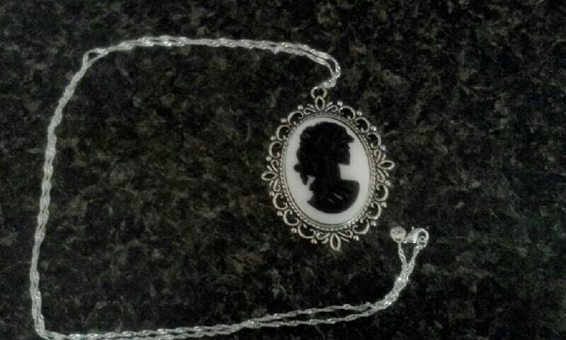 This is a simply lovely piece. The chain is sterling silver and measures 30 inches in length giving it an elegant feel. The beautiful skull cameo is in excellent condition! This is is part of the Pretty, Dead Collection is definitely a great buy for fans of this style!
